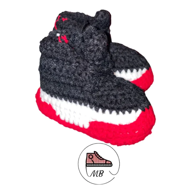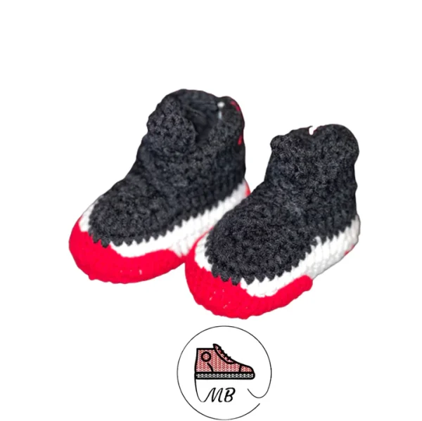 If you like basketball, or you love to collect retro athletic shoes, then these baby knit sneakers might look familiar. Designed to look like a popular brand of red and black high-tops, these baby shoes will have your precious one looking and feeling good.